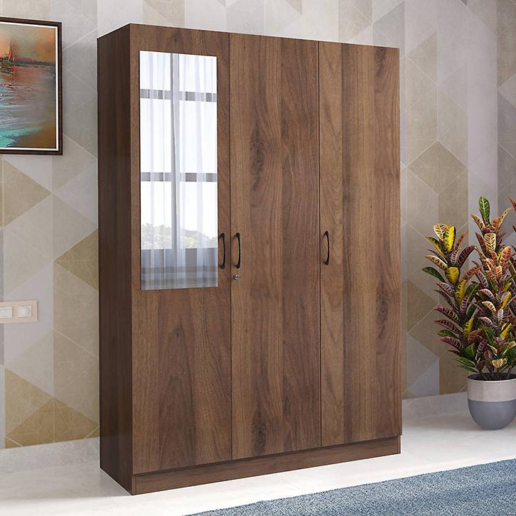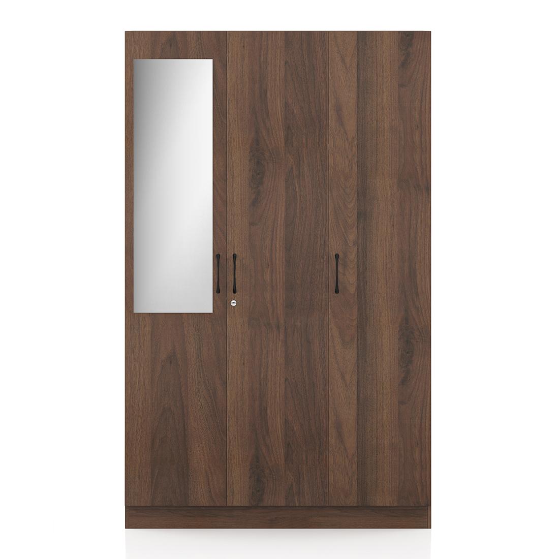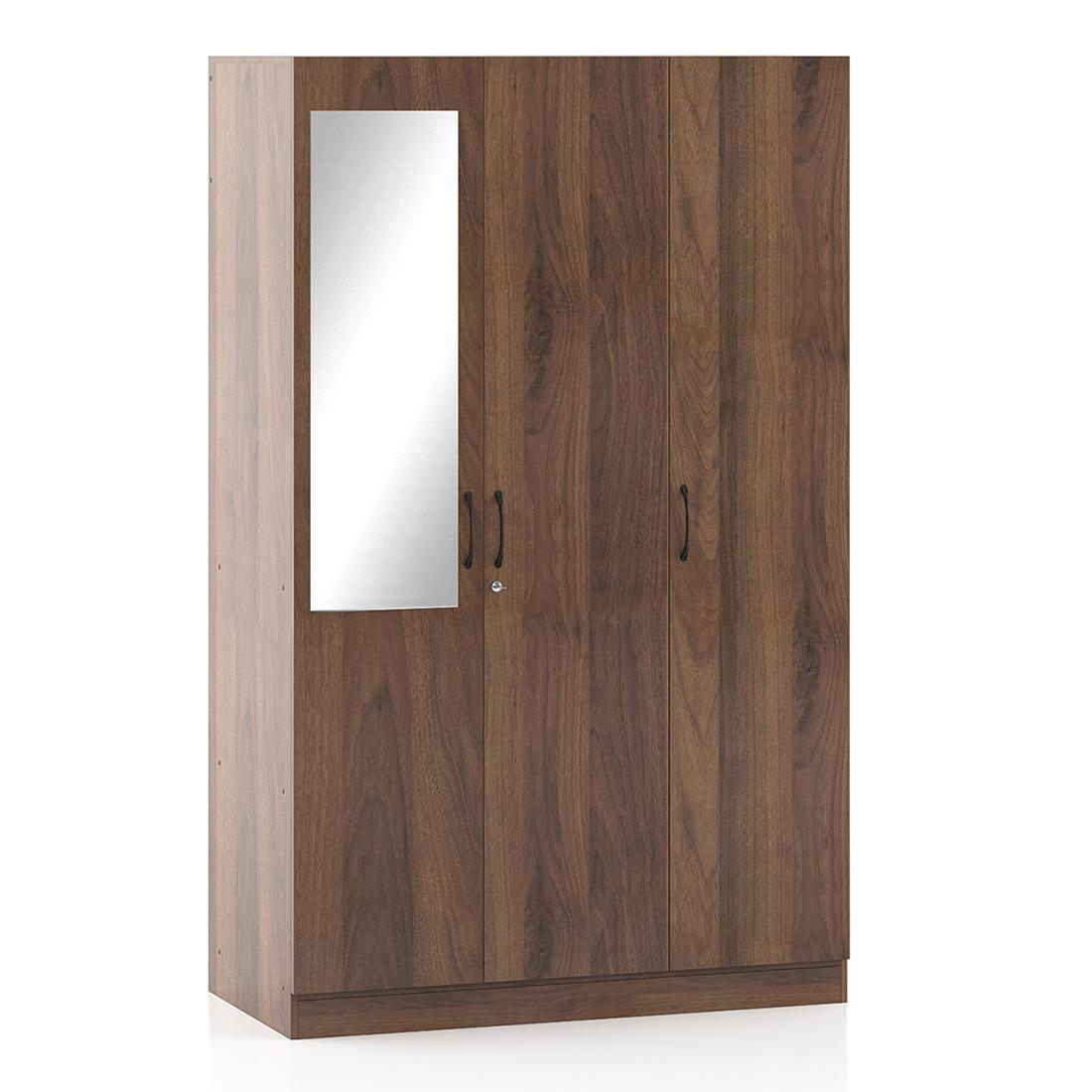 Engineered Wood 3 Door Wardrobe With Mirror in Classic Walnut Finish