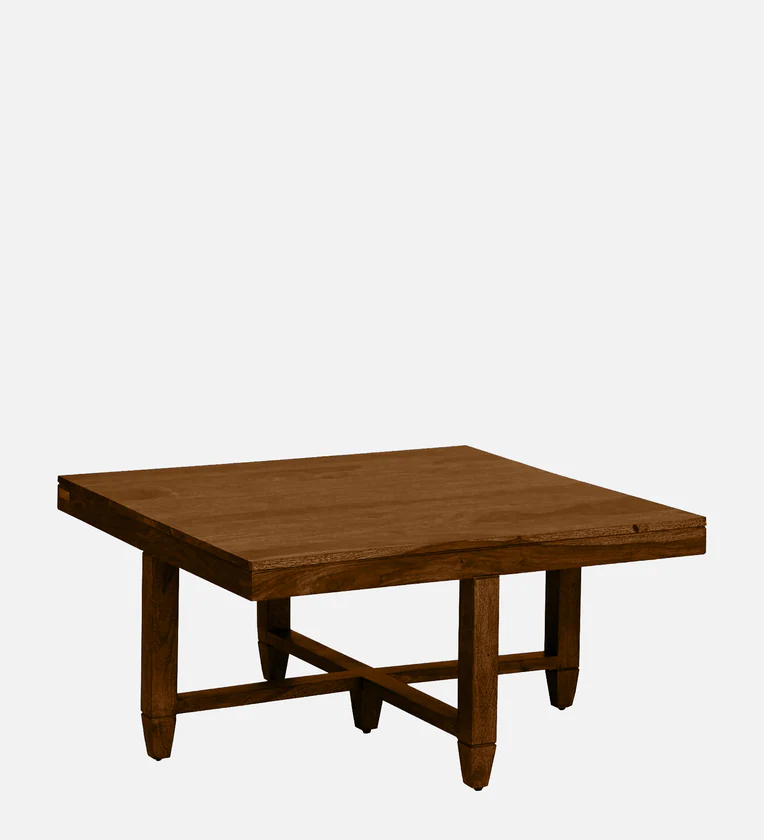 Sheesham Wood Nesting Coffee Table Set In Scratch Resistant Provincial Teak Finish With Cushioned Stools