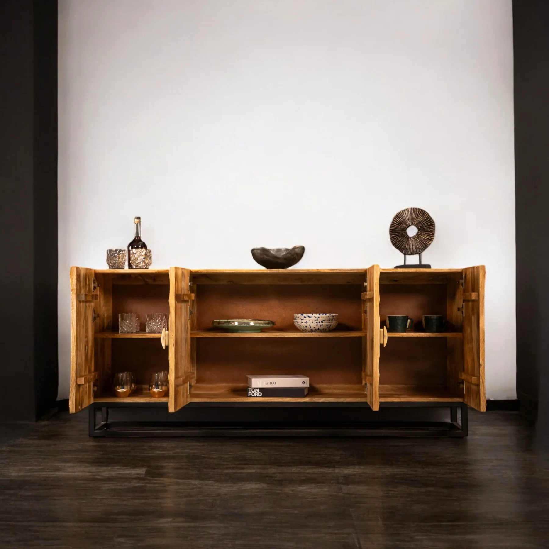 Solid Mango Wood Sideboard with Elaborated