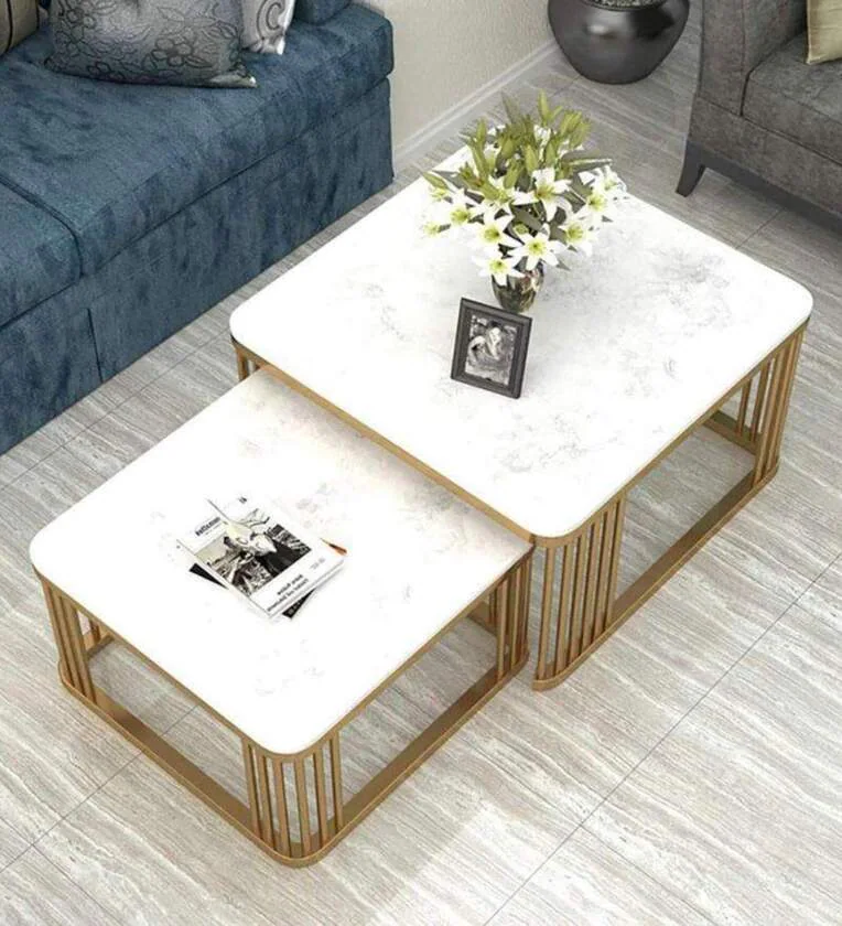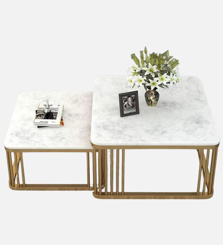 Square Marble Top Nesting Coffee Table In Gold Colour (Set of 2)
