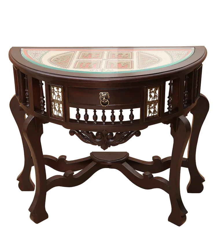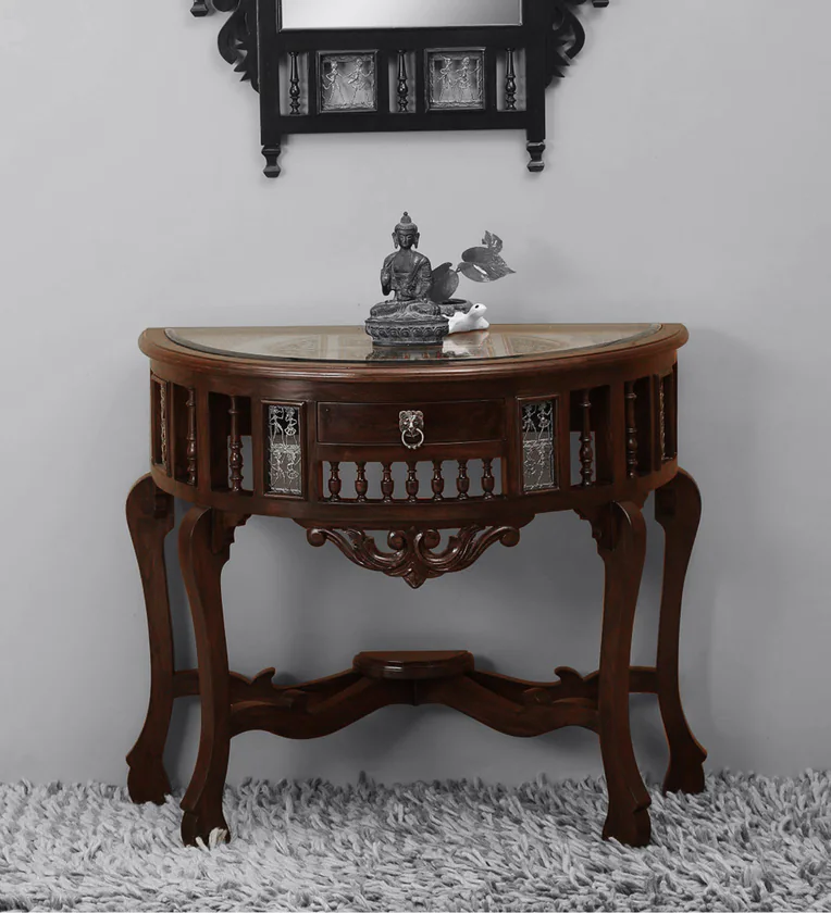 Teak Wood Console Table in Walnut Finish