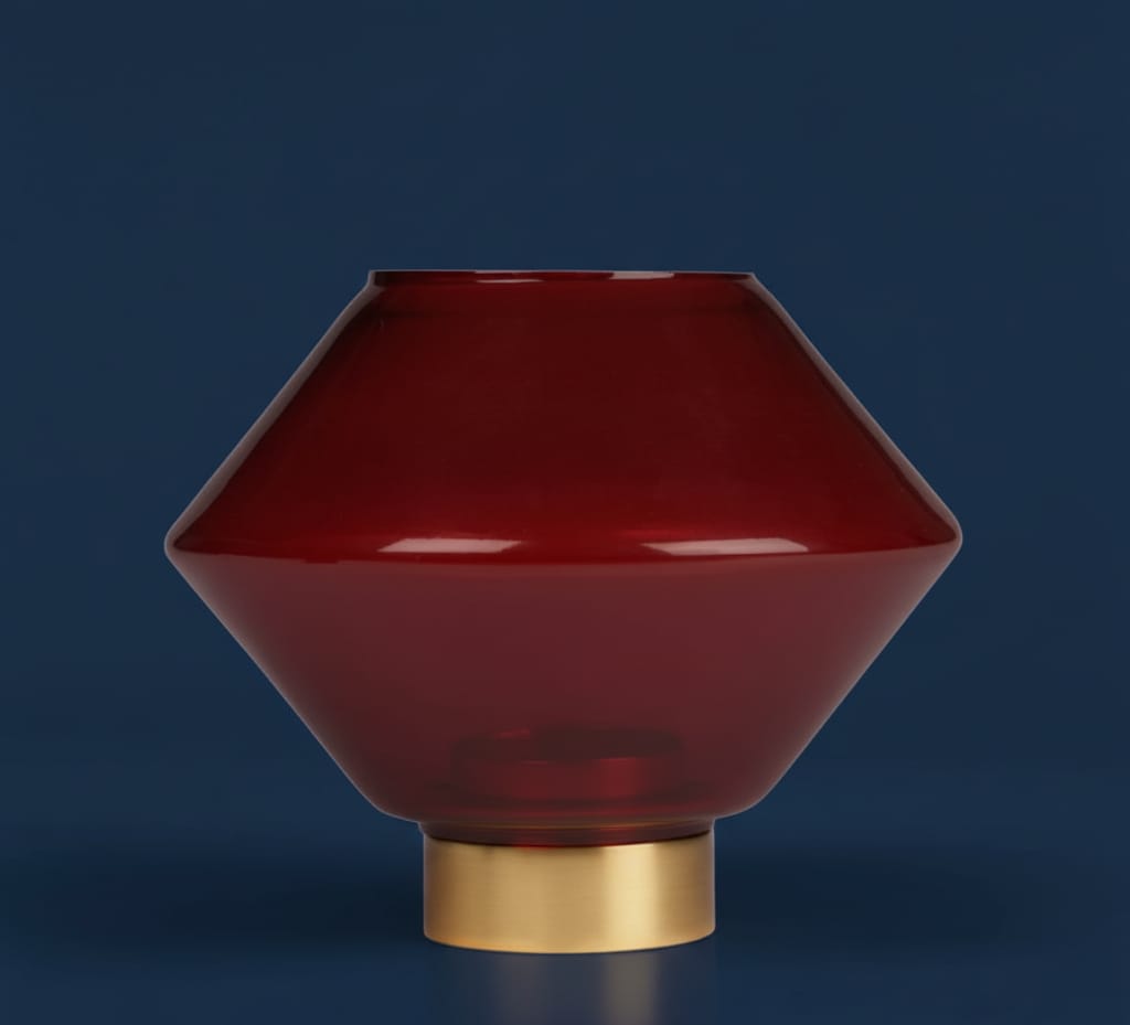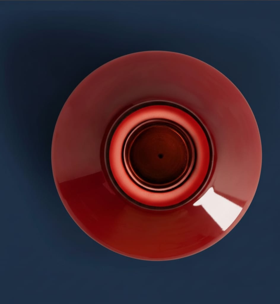 Material:Ā Cherry red coloured Glass & Stainless Steel.